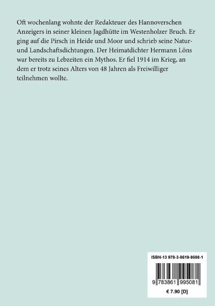 Oft wochenlang wohnte der Redakteuer des Hannoverschen Anzeigers in seiner kleinen Jagdhütte im Westenholzer Bruch. Er ging auf die Pirsch in Heide und Moor und schrieb seine Natur- und Landschaftsdichtungen. Der Heimatdichter Hermann Löns war bereits zu Lebzeiten ein Mythos. Er fiel 1914 im Krieg, an dem er trotz seines Alters von 48 Jahren als Freiwilliger teilnehmen wollte.