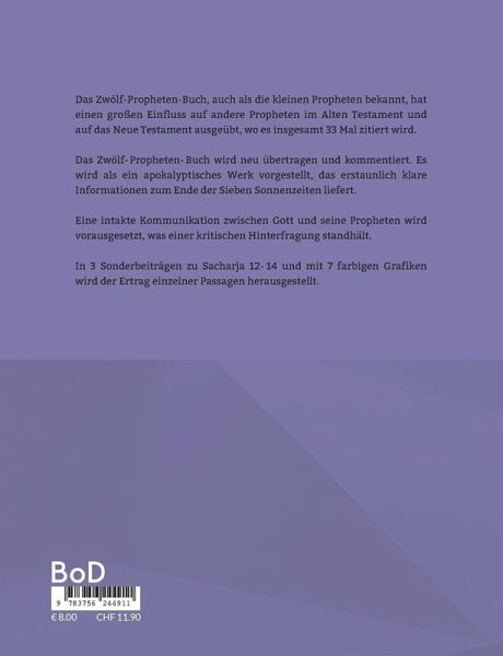 Das Zwölf-Propheten-Buch, auch als die kleinen Propheten bekannt, hat einen großen Einfluss auf andere Propheten im Alten Testament und auf das Neue Testament ausgeübt, wo es insgesamt 33 Mal zitiert wird.Das Zwölf-Propheten-Buch wird neu übertragen und kommentiert. Es wird als ein apokalyptisches Werk vorgestellt, das erstaunlich klare Informationen zum Ende der Sieben Sonnenzeiten liefert.Eine intakte Kommunikation zwischen Gott und seine Propheten wird vorausgesetzt, was einer kritischen Hinterfragung standhält.In 3 Sonderbeiträgen zu Sacharja 12-14 und mit 7 farbigen Grafiken wird der Ertrag einzelner Passagen herausgestellt.