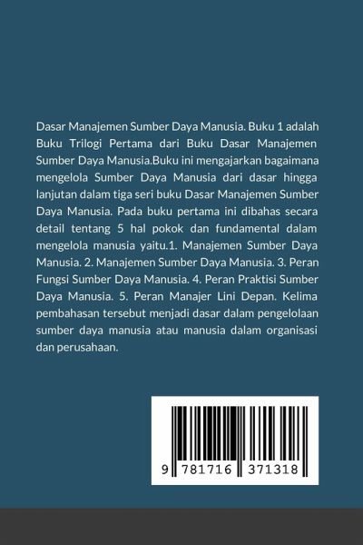 Dasar Manajemen Sumber Daya Manusia. Buku 1 adalah Buku Trilogi Pertama dari Buku Dasar Manajemen Sumber Daya Manusia.Buku ini mengajarkan bagaimana mengelola Sumber Daya Manusia dari dasar hingga lanjutan dalam tiga seri buku Dasar Manajemen Sumber Daya Manusia. Pada buku pertama ini dibahas secara detail tentang 5 hal pokok dan fundamental dalam mengelola manusia yaitu.1. Manajemen Sumber Daya Manusia. 2. Manajemen Sumber Daya Manusia. 3. Peran Fungsi Sumber Daya Manusia. 4. Peran Praktisi Sumber Daya Manusia. 5. Peran Manajer Lini Depan. Kelima pembahasan tersebut menjadi dasar dalam pengelolaan sumber daya manusia atau manusia dalam organisasi dan perusahaan.