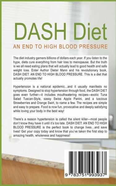 The diet industry garners billions of dollars each year. If you listen to the hype, diets cure everything from hair loss to menopause. But the truth is we all need eating plans that will actually lead to good health and safe weight loss. Dieter Mann and his revolutionary book, DASH DIET: AN END TO HIGH BLOOD PRESSURE. This is a diet that actually promotes life!Hypertension is a national epidemic... and it usually manifests no symptoms. Designed to stop hypertension through food, the DASH DIET goes even further - it includes mouthwatering recipes - exotic Tuna Salad Tuscan-Style, sassy Swiss Apple Panini, and a luscious Strawberries and Orange Swirl, to name a few. The recipes are simple and easy to prepare. Food is now fun, provocative and deeply satisfying while loving your body in the best way!There's a reason hypertension is called the silent killer - most people don't know they have it until it's too late. DASH DIET: AN END TO HIGH BLOOD PRESSURE is the perfect bookto change lives... and save lives! Get your copy today and know that you've taken the first step to amazing health, wholeness and happiness!