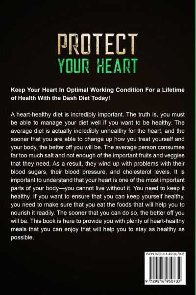 Keep Your Heart In Optimal Working Condition For a Lifetime of Health With the Dash Diet Today! A heart-healthy diet is incredibly important. The truth is, you must be able to manage your diet well if you want to be healthy. The average diet is actually incredibly unhealthy for the heart, and the sooner that you are able to change up how you treat yourself and your body, the better off you will be. The average person consumes far too much salt and not enough of the important fruits and veggies that they need. As a result, they wind up with problems with their blood sugars, their blood pressure, and cholesterol levels. It is important to understand that your heart is one of the most important parts of your body-you cannot live without it. You need to keep it healthy. If you want to ensure that you can keep yourself healthy, you need to make sure that you eat the foods that will help you to nourish it readily. The sooner that you can do so, the better off you will be. This book is here to provide you with plenty of heart-healthy meals that you can enjoy that will help you to stay as healthy as possible. In This Book You Will Learn: ¿ The Rules of The Heart-Healthy Diet ¿ Power of Decreased Saturated and Trans Fats ¿ How To Consume More Fiber ¿ The Benefits of Plant Proteins ¿ How To Up Your Whole Grain Intake ¿ Benefits of Limiting Sweets ¿ How To Drink In Moderation Benefits of the Heart Healthy Diet Include: ¿ Preventing Heart Disease ¿ Keep Your Body Healthier ¿ Cutting the risk of Alzheimer's disease ¿ Cutting the risk of Parkinson's disease ¿ Longer lifespan ¿ Healthier mind: If you suffer from anxiety or depression, this diet can actually help to alleviate some of the symptoms, or keep them at bay in the future. ¿ Weight Management And so much more! If you have struggled with your weight for some time, you may find that using this diet will actually help you to manage it, thanks to the fact that you'll be cutting out much of the foods that tend to lead to weight gain in the first place. You'll be able to enjoy a healthier body as the weight fades away through enjoying this diet. Let's Get You To Your Goals ASAP! Pick up your copy of the book right now by clicking the BUY NOW button at the top of this page!