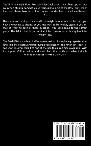 The Ultimate High Blood Pressure Diet Cookbook is your best option! Our collection of simple and delicious recipes is tailored to the DASH diet, which has been shown to reduce blood pressure and enhance heart health overall. Have you ever wished you could lose weight in one month? Perhaps you have a wedding to attend, or you just want to be healthy again. If you answered "yes" to each of these questions, you have come to the correct place. The DASH diet is the most efficient means of achieving healthful weight loss. The Dash Diet is a scientifically-proven method for reducing hypertension, lowering cholesterol, and improving overall health. The American Heart Association recommends it as one of the healthiest regimens available. With its simple-to-follow recipes and meal plans, this cookbook makes it simple to reap the benefits of the Dash Diet.