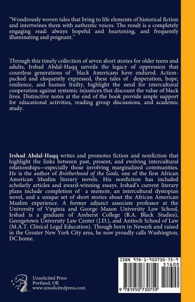Through this timely collection of seven short stories for older teens and adults, Irshad Abdal-Haqq unveils the legacy of oppression that countless generations of black Americans have endured. The first story, involving a girl and her tribe who are running for their lives from an evil army that forces female captives into sexual slavery, is reminiscent of a modern-day humanitarian refugee crisis in the Middle East, Africa, or South Asia. In a coming-of-age narrative, a teenaged boy defies law enforcement by fleeing from his rural home in the dark of night after his parents are lynched for seeking fair labor treatment. A third story is the tale of a multiethnic gang of teens who would rather live as a family of outlaws rather than endure the humiliation of racism and poverty. And in yet another, a long-time resident of a gentrifying neighborhood enlists the aid of a newcomer in her quest to fight off eviction for another month. Action-packed and eloquently expressed, these mesmerizing stories of desperation, hope, resilience, and human frailty, will spark the imagination and touch the heart of readers of all backgrounds. And most importantly, they highlight the need for intercultural cooperation against systemic injustices that discount the value of black lives. Distinctive notes at the end of the book provide ample support for educational activities, reading group discussions, and academic study.