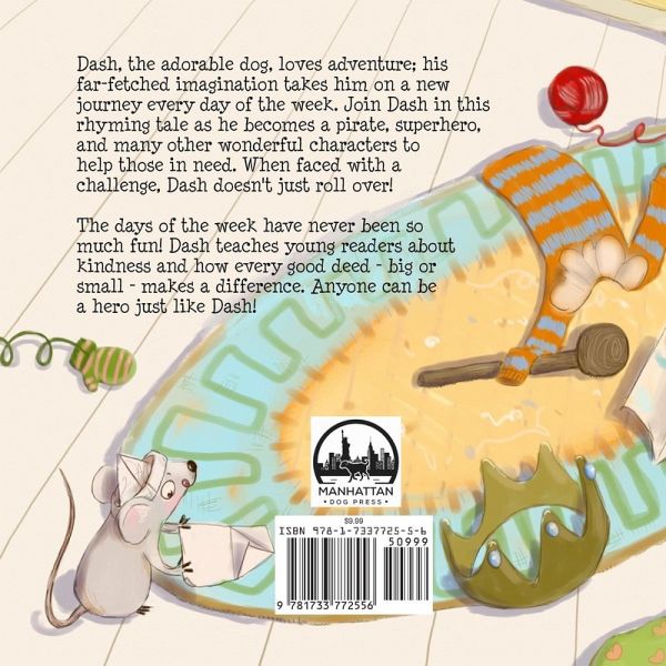 Dash, the adorable dog, loves adventure; his far-fetched imagination takes him on a new journey every day of the week. Join Dash in this rhyming tale as he becomes a pirate, superhero, and many other wonderful characters to help those in need. When faced with a challenge, Dash doesn't just roll over! The days of the week have never been so much fun! Dash teaches young readers about kindness and how every good deed-big or small-makes a difference. Anyone can be a hero just like Dash!