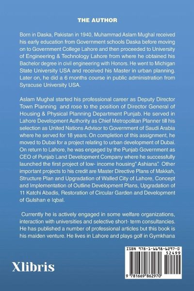 Aslam Mughal started his professional career as Deputy Director Town Planning and rose to the position of Director General of Housing & Physical Planning Department Punjab. He served in Lahore Development Authority as Chief Metropolitan Planner till his selection as United Nations Advisor to Government of Saudi Arabia where he served for 18 years. On completion of this assignment, he moved to Dubai for a project relating to urban development of Dubai. On return to Lahore, he was engaged by the Punjab Government as CEO of Punjab Land Development Company where he successfully launched the first project of low- income housing" Ashiana". Other important projects to his credit are Master Directive Plans of Makkah, Structure Plan and Upgradation of Walled City of Lahore, Concept and Implementation of Outline Development Plans, Upgradation of 11 Katchi Abadis, Restoration of Circular Garden and Development of Gulshan e Iqbal.