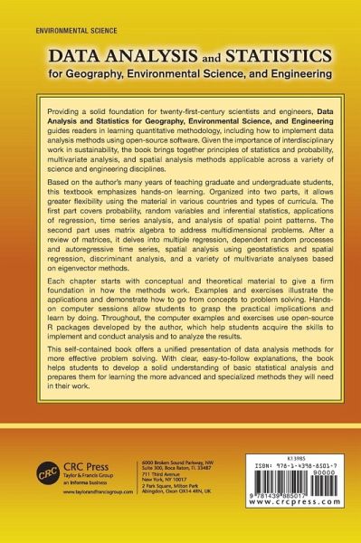 This practical, classroom-tested textbook helps readers learn quantitative methodology, including how to implement advanced analysis methods using an open-source software platform. Based on the author's many years of teaching undergraduate and graduate students in several countries, the book brings together principles of statistics and probability, multivariate analysis, and spatial analysis methods applied to a variety of geographical and environmental models. Theory is accompanied by practical hands-on computer exercises, progressing from easy to difficult. The text also presents a review of mathematical methods, making the book self-contained.