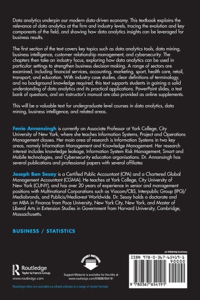 Data analytics underpin our modern data-driven economy. This textbook explains the relevance of data analytics at the firm and industry levels, tracing the evolution and key components of the field and showing how data analytics insights can be leveraged for business results.