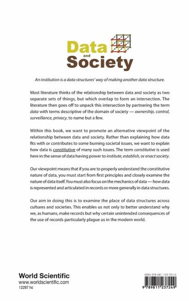 Most literature thinks of the relationship between data and society as additive, meaning that data and society are seen as two separate sets of things but which overlap to form an intersection. The literature then goes off to unpack the intersection of the two circles and partners the term data in this manner with terms descriptive of the domain of society - ownership, control, surveillance, and privacy, to name but a few. Within this book, we want to promote an alternative viewpoint of the relationship between data and society. Rather than explaining how data fits with or contributes to some burning societal issues, we want to explain how data is constitutive of many such issues. The term constitutive is used here in the sense of data having power to institute, establish, or enact society. Our viewpoint means that if you are to properly understand the constitutive nature of data, you must start from first principles and closely examine the nature of data itself. You must also focus on the mechanics of data - how data is represented and articulated in records or more generally in data structures. Our aim in doing this is to examine the place of data structures across cultures and societies. In doing so, we hope to better understand why we, as humans, make records. In doing this, we can also better understand some of the unintended consequences of the use of records, which particularly plague us in the modern world.