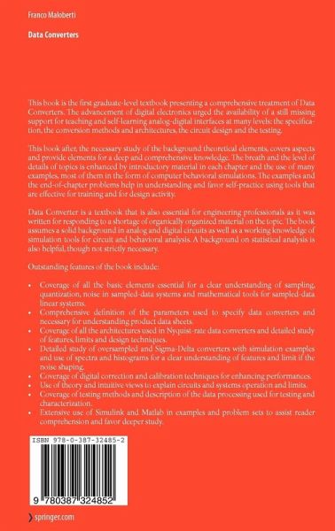 This book is the first graduate-level textbook presenting a comprehensive treatment of Data Converters. It provides comprehensive definition of the parameters used to specify data converters, and covers all the architectures used in Nyquist-rate data converters.