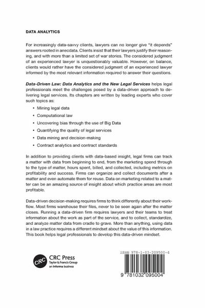 Data-Driven Law: Data Analytics and the New Legal Services helps legal professionals meet the challenges posed by a data-driven approach to delivering legal services. Its chapters are written by leading experts who cover such topics as:
