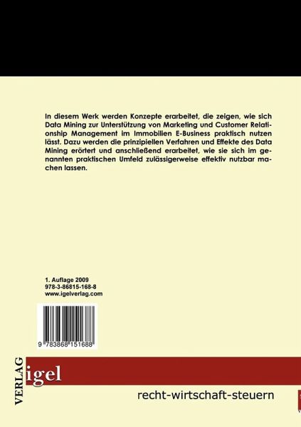 In diesem Werk werden Konzepte erarbeitet, die zeigen, wie sich Data Mining zur Unterstützung von Marketing und Customer Relationship Management im Immobilien E-Business praktisch nutzen lässt. Dazu werden die prinzipiellen Verfahren und Effekte des Data Mining erörtert und anschließend erarbeitet, wie sie sich im genannten praktischen Umfeld zulässigerweise effektiv nutzbar machen lassen.