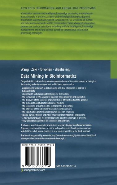 The goal of this book is to help readers understand state-of-the-art techniques in biological data mining and data management and includes topics such as: