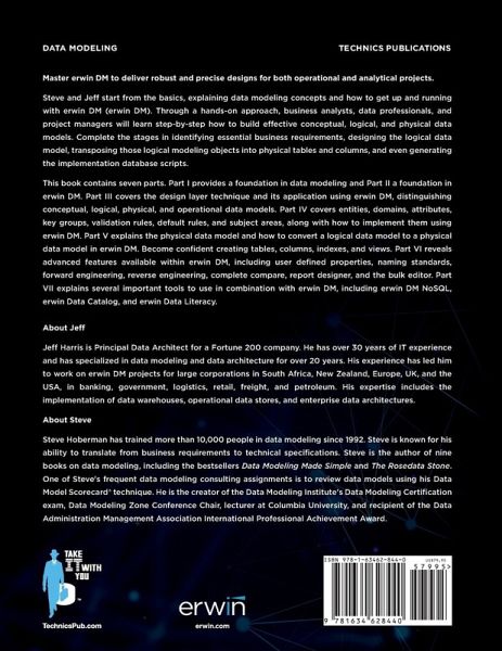 Master erwin DM to deliver robust and precise designs for both operational and analytical projects. Steve and Jeff start from the basics, explaining data modeling concepts and how to get up and running with erwin DM (erwin DM). Through a hands-on approach, business analysts, data professionals, and project managers will learn step-by-step how to build effective conceptual, logical, and physical data models. Complete the stages in identifying essential business requirements, designing the logical data model, transposing those logical modeling objects into physical tables and columns, and even generating the implementation database scripts.This book contains seven parts. Part I provides a foundation in data modeling and Part II a foundation in erwin DM. Part III covers the design layer technique and its application using erwin DM, distinguishing conceptual, logical, physical, and operational data models. Part IV covers entities, domains, attributes, key groups, validation rules, default rules, and subject areas, along with how to implement them using erwin DM. Part V explains the physical data model and how to convert a logical data model to a physical data model in erwin DM. Become confident creating tables, columns, indexes, and views. Part VI reveals advanced features available within erwin DM, including user defined properties, naming standards, forward engineering, reverse engineering, complete compare, report designer, and the bulk editor. Part VII explains several important tools to use in combination with erwin DM, including erwin DM NoSQL, erwin Data Catalog, and erwin Data Literacy.