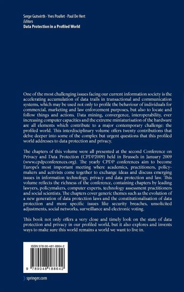 One of the most challenging issues facing our current information society is the accelerating accumulation of data trails in transactional and communication systems, which may be used not only to profile the behaviour of individuals for commercial, marketing and law enforcement purposes, but also to locate and follow things and actions. Data mining, convergence, interoperability, ever- increasing computer capacities and the extreme miniaturisation of the hardware are all elements which contribute to a major contemporary challenge: the profiled world. This interdisciplinary volume offers twenty contributions that delve deeper into some of the complex but urgent questions that this profiled world addresses to data protection and privacy. The chapters of this volume were all presented at the second Conference on Privacy and Data Protection (CPDP2009) held in Brussels in January 2009 (www.cpdpconferences.org). The yearly CPDP conferences aim to become Europe's most important meeting where academics, practitioners, policy-makers and activists come together to exchange ideas and discuss emerging issues in information technology, privacy and data protection and law. This volume reflects the richness of the conference, containing chapters by leading lawyers, policymakers, computer, technology assessment and social scientists. The chapters cover generic themes such as the evolution of a new generation of data protection laws and the constitutionalisation of data protection and more specific issues like security breaches, unsolicited adjustments, social networks, surveillance and electronic voting. This book not only offers a very close and timely look on the state of data protection and privacy in our profiled world, but it also explores and invents ways to make sure this world remains a world we want to live in.