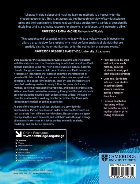 "An accessible text that provides students and instructors with the data science foundations to address earth science questions using real-world case studies. Focusing on intuitive reasoning, students are encouraged to develop their understanding through exercises utilizing Python notebooks and real datasets"--