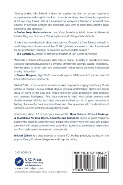 Honest and direct, full of examples from real life, Data Science Without Makeup: A Guidebook for End-Users, Analysts and Managers will be of great interest to people who aspire to work with data, people who already work with data, and people who work with people who work with data - from students to professionals.