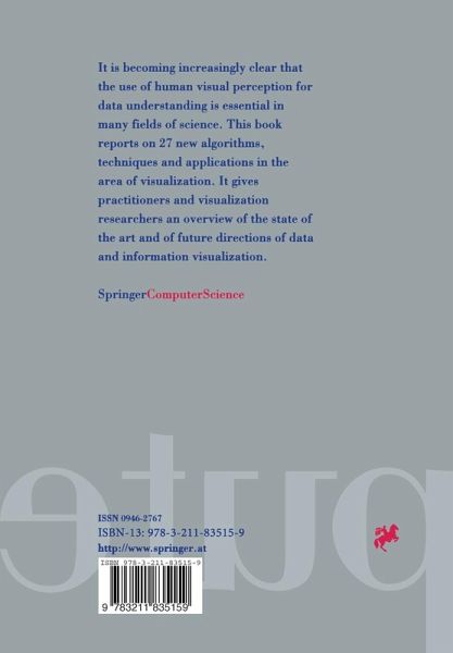 It is becoming increasingly clear that the use of human visual perception for data understanding is essential in many fields of science. This book contains the papers presented at VisSym'00, the Second Joint Visualization Symposium organized by the Eurographics and the IEEE Computer Society Technical Committee on Visualization and Graphics (TCVG). It reports on 27 new algorithms, techniques and applications in the area of data visualization. The topics are scientific data visualization and information visualization. It gives practitioners and visualization researchers an overview of the state of the art and of future directions of data visualization.…mehr