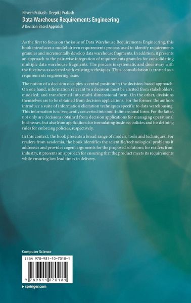 Chapter 1. Requirements Engineering for Transactional Systems.- Chapter 2. Requirements Engineering for Data Warehousing.- Chapter 3. Issues in Data Warehouse Requirements Engineering.- Chapter 4. Decision-Centric Information Elicitation.- Chapter 5. Decisional Application Layer.- Chapter 6. The Development Process.- Chapter 7. Experience.- Chapter 8. Conclusion.