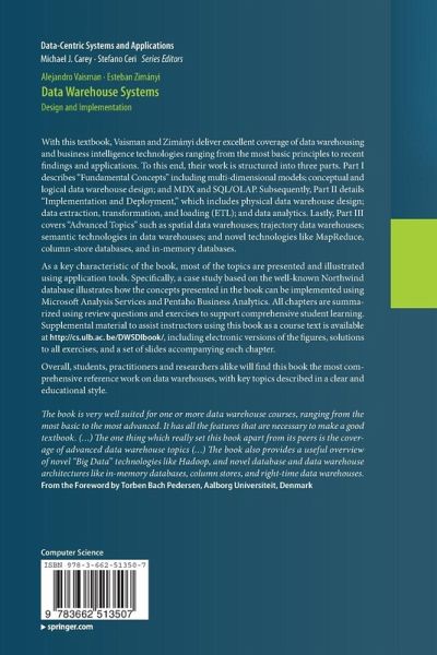 "The book is very well suited for one or more data warehouse courses, ranging from the most basic to the most advanced. It has all the features that are necessary to make a good textbook. (...) The one thing which really set this book apart from its peers is the coverage of advanced data warehouse topics (...) The book also provides a useful overview of novel "Big Data" technologies like Hadoop, and novel database and data warehouse architectures like in-memory databases, column stores, and right-time data warehouses." from the foreword by Torben Bach Pedersen, Aalborg Universiteit, Denmark