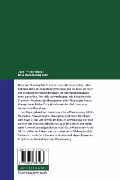 Data Warehousing hat in den letzten Jahren in vielen Unternehmen stark an Bedeutung gewonnen und ist dabei zu einer der zentralen Herausforderungen im Informationsmanagement geworden. Für viele Anwendungen, wie beispielsweise Customer-Relationship-Management oder Führungsinformationssysteme, bilden Data-Warehouse-Architekturen eine wesentliche Grundlage. Der Tagungsband zur Konferenz "Data Warehousing 2000 - Methoden, Anwendungen, Strategien" gibt einen Überblick zum State-of-the-Art sowohl im Bereich Entwicklung aus technischer und organisatorischer bzw. betriebswirtschaftlicher Sicht als auch im Bereich der vielfältigen Anwendungsmöglichkeiten einer Data-Warehouse-Architektur. Neben Aufsätzen aus dem wissenschaftlichen Bereich finden sich auch Berichte aus laufenden und abgeschlossenen Projekten im Umfeld des Data Warehousing.