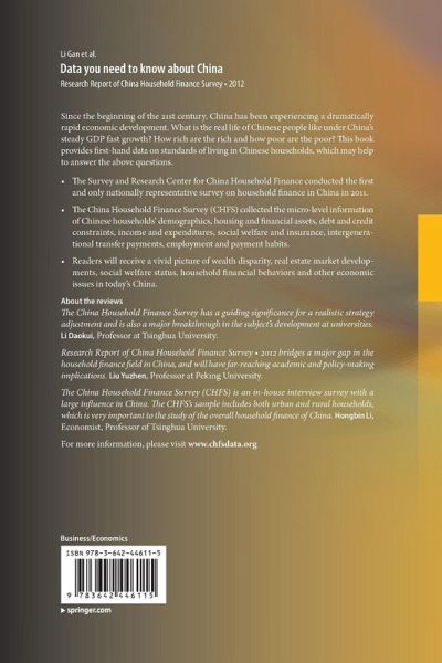 The Survey and Research Center for China Household Finance conducted the first and only nationally representative survey on household finance in China in 2011. The China Household Finance Survey (CHFS) collected the micro-level information of Chinese households' demographics, housing and financial assets, debt and credit constraints, income and expenditures, social welfare and insurance, intergenerational transfer payments, employment and payment habits.Readers will receive a vivid picture of wealth disparity, real estate market developments, social welfare status, household financial behaviors and other economic issues in today's China.