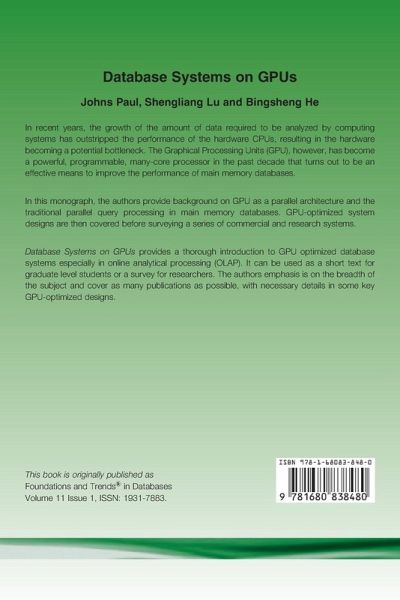 In recent years, the growth of the amount of data required to be analyzed by computing systems has outstripped the performance of the hardware CPUs, resulting in the hardware becoming a potential bottleneck. The Graphical Processing Units (GPU), however, has become a powerful, programmable, many-core processor in the past decade that turns out to be an effective means to improve the performance of main memory databases. In this monograph, the authors provide background on GPU as a parallel architecture and the traditional parallel query processing in main memory databases. GPU-optimized system designs are then covered before surveying a series of commercial and research systems. Database Systems on GPUs provides a thorough introduction to GPU optimized database systems especially in online analytical processing (OLAP). It can be used as a short text for graduate level students or a survey for researchers. The authors emphasis is on the breadth of the subject and cover as many publications as possible, with necessary details in some key GPU-optimized designs.