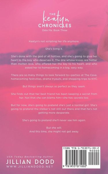 Keatyn's not scripting her life anymore. She's living it. She's done with the god of all hotties, and she's going to give her heart to the boy who deserves it. The one whose kisses are hotter than molten lava, who offered her the key to his heart, and who asked her to homecoming in a big, sexy way. There are so many things to look forward to-parties at The Cave, homecoming festivities, drama tryouts, and shopping trips to NYC. But things aren't always as perfect as they seem. She finds out that her best friend has been keeping a secret from her. Not that she can blame him-she has secrets too. But for now, she's going to pretend she's just a normal girl. She's going to pretend the stalker's not still out there and that he's not getting more desperate. She's going to pretend she'll never see him again. But she will. And this time, she might not get away.