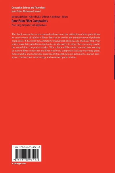 This book covers the recent research advances on the utilization of date palm fibers as a new source of cellulosic fibers that can be used in the reinforcement of polymer composites. It discusses the competitive mechanical, physical, and chemical properties which make date palm fibers stand out as an alternative to other fibers currently used in the natural fiber composites market. This volume will be useful to researchers working on natural fiber composites and fiber reinforced composites looking to develop green, biodegradable and sustainable components for application in automotive, marine, aerospace, construction, wind energy and consumer goods sectors.