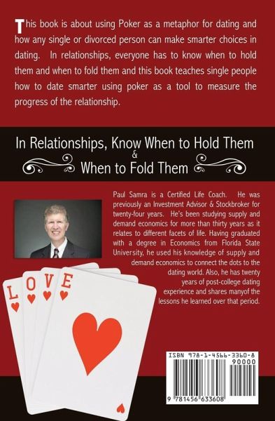 This book is about using Poker as a metaphor for dating and how any single or divorced person can make smarter choices in dating. In relationships, everyone has to know when to hold them and when to fold them and this book teaches single people how to date smarter using poker as a tool to measure the progress of the relationship.