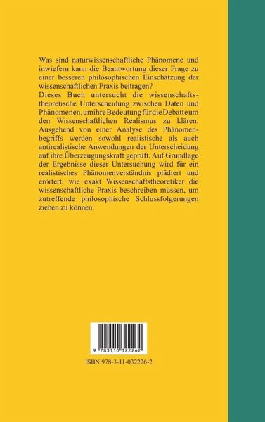 Was sind naturwissenschaftliche Phänomene und inwiefern kann die Beantwortung dieser Frage zu einer besseren philosophischen Einschätzung der wissenschaftlichen Praxis beitragen? Dieses Buch untersucht die wissenschaftstheoretische Unterscheidung zwischen Daten und Phänomenen, um ihre Bedeutung für die Debatte um den Wissenschaftlichen Realismus zu klären. Ausgehend von einer Analyse des Phänomenbegriffs werden sowohl realistische als auch antirealistische Anwendungen der Unterscheidung auf ihre Überzeugungskraft geprüft. Auf Grundlage der Ergebnisse dieser Untersuchung wird für ein realistisches Phänomenverständnis plädiert und erörtert, wie exakt Wissenschaftstheoretiker die wissenschaftliche Praxis beschreiben müssen, um zutreffende philosophische Schlussfolgerungen ziehen zu können.