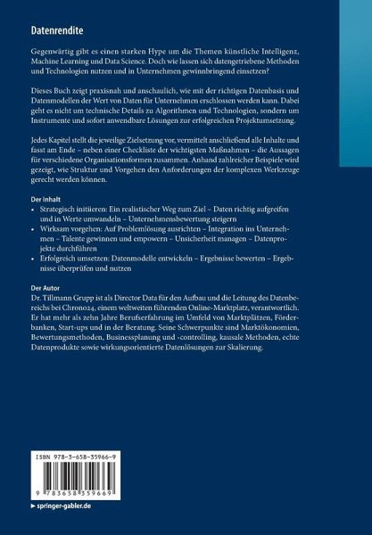 Dieses Buch zeigt praxisnah und anschaulich, wie mit der richtigen Datenbasis und Datenmodellen der Wert von Daten für Unternehmen erschlossen werden kann. Dabei geht es nicht um technische Details zu Algorithmen und Technologien, sondern um Instrumente und sofort anwendbare Lösungen zur erfolgreichen Projektumsetzung.