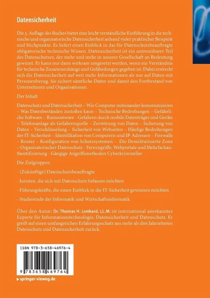 Die 3. Auflage des Buches bietet eine leicht verständliche Einführung in die technische und organisatorische Datensicherheit anhand vieler praktischer Beispiele und Stichpunkte. Es liefert einen Einblick in das für Datenschutzbeauftragte obligatorische technische Wissen. Datensicherheit ist ein untrennbarer Teil des Datenschutzes, der mehr und mehr in unserer Gesellschaft an Bedeutung gewinnt. Er kann nur dann wirksam umgesetzt werden, wenn ein Verständnis für technische Zusammenhänge und Gefährdungen gegeben ist. Dabei erstreckt sich die Datensicherheit auf weit mehr Informationen als nur auf Daten mit Personenbezug. Sie sichert sämtliche Daten und damit den Fortbestand von Unternehmen und Organisationen.