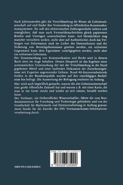 Wenn man die Entwicklung der Informatik seit dem Auftauchen der ersten elek tronischen Rechenanlagen betrachtet, dann findet man, daB bis auf geheim dienstliche Anwendungen die DatenverschlGsselung innerhalb dieses Zeitraums von immerhin etwa 40 Jahren erst im letzten Jahrzehnt eine Rolle gespielt hat. Dies ist umso bemerkenswerter, als die VerschlGsselung von Nachrichten eine sehr alte Kunst ist, die schon in der Antike geGbt wurde. DafUr, daB man sich erst so spat mit diesen Fragen beschaftigte, gibt es vor allem zwei GrGnde: einerseits liegt der Beginn eines verbreiteteren Aufbaus von Daten…mehr