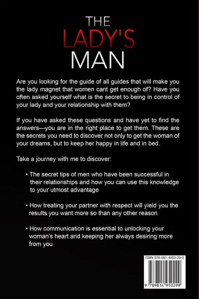 Are you looking for the guide of all guides that will make you the lady magnet that women cant get enough of? Have you often asked yourself what is the secret to being in control of your lady and your relationship with them? If you have asked these questions and have yet to find the answers—you are in the right place to get them. These are the secrets you need to discover not only to get the woman of your dreams, but to keep her happy in life and in bed. Yes, you are going to know the woman who is right for you. You are just going to know because there are not going to be hundreds of questions circling and one in particular "is she the right one for me." But how do you make her see you are right for her? How do you get her entire heart? Those secrets will be shared here as we look at a few common sense topics that yield the secrets you are so desperately seeking. These secrets are going to offer you insight into women that other men are still struggling to find. They will help you seek out the person who is right for you and make sure you have a successful, happy life. Take a journey with me to discover: • The secret tips of men who have been successful in their relationships and how you can use this knowledge to your utmost advantage • How treating your partner with respect will yield you the results you want more so than any other reason • How communication is essential to unlocking your woman’s heart and keeping her always desiring more from you Lastly, enter this journey knowing that being a Lady's Man comes with responsibilities as well. The ultimate prize being finding a lady who loves you fully and will never look at another man with the same love and desire as she does for you.
