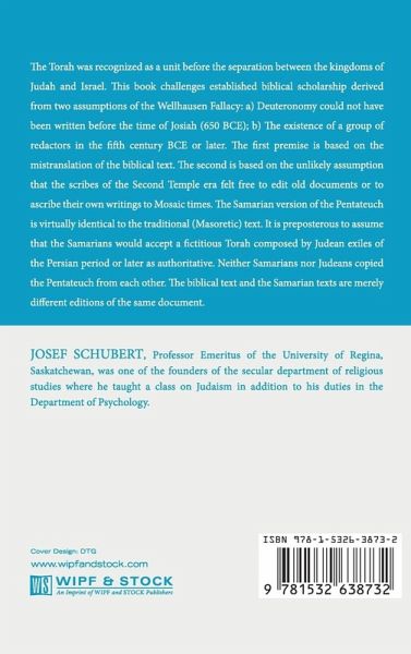 The Torah was recognized as a unit before the separation between the kingdoms of Judah and Israel. This book challenges established biblical scholarship derived from two assumptions of the Wellhausen Fallacy: a) Deuteronomy could not have been written before the time of Josiah (650 BCE); b) The existence of a group of redactors in the fifth century BCE or later. The first premise is based on the mistranslation of the biblical text. The second is based on the unlikely assumption that the scribes of the Second Temple era felt free to edit old documents or to ascribe their own writings to Mosaic times. The Samarian version of the Pentateuch is virtually identical to the traditional (Masoretic) text. It is preposterous to assume that the Samarians would accept a fictitious Torah composed by Judean exiles of the Persian period or later as authoritative. Neither Samarians nor Judeans copied the Pentateuch from each other. The biblical text and the Samarian texts are merely different editions of the same document.