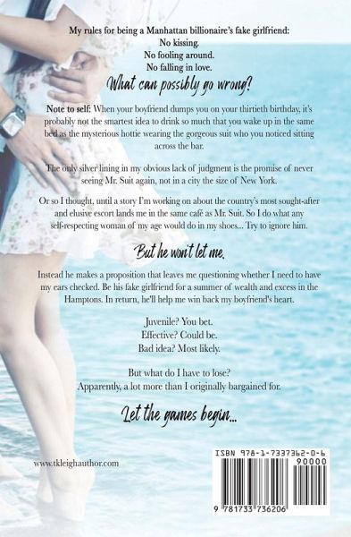 Note to self: When your boyfriend dumps you on your thirtieth birthday, it's probably not the smartest idea to drink so much that you wake up in the same bed as the mysterious hottie wearing the gorgeous suit who you noticed sitting across the bar. The only silver lining in my obvious lack of judgment is the promise of never seeing Mr. Suit again, not in a city the size of New York. Or so I thought, until a story I'm working on about the country's most sought-after and elusive escort lands me in the same café as Mr. Suit. So I do what any self-respecting woman of my age would do in my shoes... Try to ignore him. But he won't let me. Instead he makes a proposition that leaves me questioning whether I need to have my ears checked. Be his fake girlfriend for a summer of wealth and excess in the Hamptons. In return, he'll help me win back my boyfriend's heart. Juvenile? You bet. Effective? Could be. Bad idea? Most likely. But what do I have to lose? Apparently, a lot more than I originally bargained for. Let the games begin...