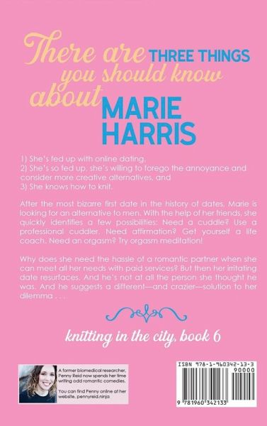USA TODAY BESTSELLING romantic comedy series 'Dating-ish' can be read as a standalone, is a full length 100k word novel, and is book #6 in the Knitting in the City Series. There are three things you need to know about Marie Harris: 1) She's fed up with online dating, 2) She's so fed up, she's willing to forego the annoyance and consider more creative alternatives, and 3) She knows how to knit. After the most bizarre and irritating first date in the history of humankind, Marie is looking for an alternative to men. With the help of her friends, she quickly identifies a few possibilities: Need a cuddle? Use a professional cuddler. Need affirmation? Get yourself a life coach. Need an orgasm? Try orgasm meditation! Why does she need the hassle of a romantic partner when she can meet all her needs with paid services? But then her irritating date resurfaces. And he's not at all the person she thought he was. And he suggests a different--and crazier--solution to her dilemma . . . As everyone knows (or will soon come to realize), traditional relations between humans are a thing of the past. Robots are our future. And if robots are our future, then why do we need other people at all?