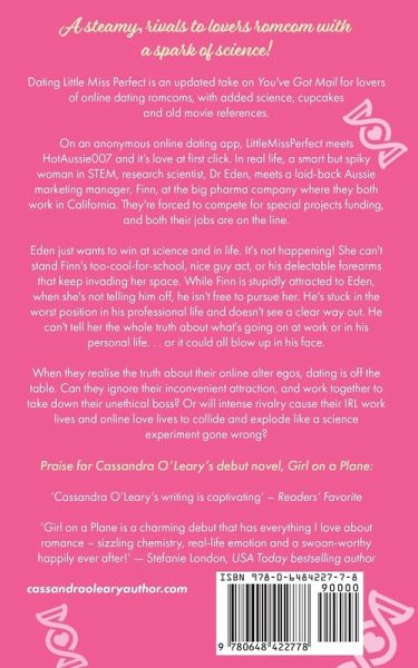 The perfect romcom read for fans of The Soulmate Equation by Christina Lauren and The Hating Game by Sally Thorne . . . On an anonymous online dating app, LittleMissPerfect meets HotAussie007 and it's love at first click. In real life, a smart but spiky woman in STEM, research scientist, Dr Eden, meets a laid-back Aussie marketing manager, Finn, at the big pharma company where they both work in California. They're forced to compete for special projects funding, and both their jobs are on the line. Eden just wants to win at science and in life. It's not happening! She can't stand Finn's too-cool-for-school, nice guy act, or his delectable forearms that keep invading her space. While Finn is stupidly attracted to Eden, when she's not telling him off, he isn't free to pursue her. He's stuck in the worst position in his professional life, and doesn't see a clear way out. He can't tell her the whole truth about what's going on at work or in his personal life. . . or it could all blow up in his face. When they realise the truth about their online alter egos, dating is off the table. Can they ignore their inconvenient attraction, and work together to take down their unethical boss? Or will intense rivalry cause their IRL work lives and online love lives to collide and explode like a science experiment gone wrong? Note: Dating Little Miss Perfect is an updated take on You've Got Mail for lovers of online dating romcoms, with added science, cupcakes and old movie references! This new release from award-winning author Cassandra O'Leary is a stand-alone contemporary romance novel of approximately 97,000 words.
