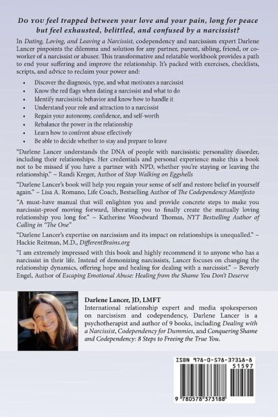 Do you feel trapped between your love and your pain, long for peace but feel exhausted, belittled, and confused by a narcissist? If you're in an abusive relationship and either don't want to leave or are having difficulty doing so, Dating, Loving, and Leaving a Narcissist is for you. It's insightful, researched, and empathetic. The core problem is that narcissists prioritize power and sacrifice the relationship to get it, while their partners prioritize the relationship and sacrifice themselves to keep it. This book offers hope and can help you restore your self-esteem and rebalance power in an abusive or narcissistic relationship. It includes Essential Tools for Improving and Leaving and an in-depth analysis of the relationship, how to make changes, and how to assess its prognosis. It will help you leave if you so decide. This workbook is packed with healing exercises, checklists, and lists of actions, including a strategic step-by-step plan with scripts to confront abuse and get your needs met. You will reclaim yourself and improve your relationship, whether the narcissist is your partner, parent, child, sibling, or co-worker or doesn't have a narcissistic personality disorder. In sum, you will have practical plans you can implement to better your relationship with yourself and your loved one and be able to determine whether and how to leave the relationship. You will:Discover the diagnosis, type, and deep motivations of a narcissist Recognize the warning signs when dating a narcissist Identify the behavior and what to expect in narcissistic relationships Understand your role and attraction to a narcissist Regain your independence, confidence, and self-esteem Rebalance the power in the relationship Find out how to confront narcissistic abuse effectively Be able to assess your relationship and prepare to leave Chapter 1 examines a narcissistic personality disorder, types of narcissists, including narcissistic parents, and the cause and signs of narcissism. Chapter 2 focuses on the underlying features, behaviors, motivations, and traits. You will discover how to identify the type you're dealing with and why narcissists act the way they do. Chapter 3 explains narcissistic defenses and all varieties of narcissistic abuse including the most subtle forms. Chapters 4 and 5 describe codependency and the type of person who loves a narcissist and what makes them susceptible to narcissists and abuse. Chapters 6 and 7 look at the relationship, starting with the mutual attraction and the signs and problems that arise when dating and loving a narcissist. They cover issues such as control, intimacy, emotional unavailability, love-bombing, trauma bonds, ghosting, and gaslighting and how to determine whether a narcissist is capable of love. If you've been emotionally abandoned before, you'll learn how to prevent its recurrence. Chapters 8 and 9 are about taking action and changing the balance of power. A blueprint is laid out to follow in order to change the relationship dynamics. Chapter 9 details a step-by-step game plan to effectively communicate and confront narcissistic behavior and emotional abuse. Scripts are suggested you can practice to set boundaries and ask for changes that you want. It also offers advice for navigating couples therapy. The final chapters 10-12 discuss leaving and moving on. They cover why it's so difficult, how to decide, and what to expect, including hoovering and flying monkeys, plus practical advice regarding tactics and strategies for divorcing a narcissist. The stages of recovery from narcissistic abuse are set forth with guidance and recommendations for creating a single life, dating, and therapy.
