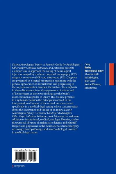 Dating Neurological Injury: A Forensic Guide for Radiologists, Other Expert Medical Witnesses, and Attorneys presents a unique way to approach the dating of neurological injury as imaged by modern computed tomography (CT), magnetic resonance (MR) and ultrasound (US). Chapters are presented in a logical progression beginning with the general appearance of normal brain and progressing to the way abnormalities manifest themselves. The emphasis in these discussions is on the appearance of edema and of hemorrhage, as these two findings are the brain's most common response to injury. This volume presents in a systematic fashion the principles involved in the interpretation of images of the central nervous system specifically in a medical-legal setting where concern exists about the occurrence and timing of an injury. Dating Neurological Injury: A Forensic Guide for Radiologists, Other Expert Medical Witnesses, and Attorneys is a welcome addition to institutional, medical, and legal libraries, and to the personal libraries of malpractice defense and plaintiff lawyers and physicians in the neurosciences (neurosurgery, neurology, neuropathology, and neuroradiology) involved in medical-legal issues.