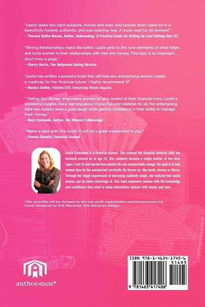 "Leslie takes two hard subjects, money and men, and tackles them head-on in a beautifully honest, authentic, and eye-opening way. A must-read for all women!" - Theresa Salihu-Musso, Success Coach and Author of Rebounding: A Practical Guide for Getting Up (and Getting Over It!) "Strong Relationships make life better. Leslie gets to the core elements of what helps and hurts women in their relationships with men and money. This topic is so important...don't miss a page."-Cherry Norris, The Hollywood Dating Director "Leslie has written a powerful book that will help any enterprising woman create a roadmap for her financial future. I highly recommend it!" -- Monica Smiley, Publisher/CEO, Enterprising Women magazine. "Dating Our Money" empowers women to take control of their financial lives. Leslie Bishop's wonderful insights make learning about money fun and relatable for all and her entertaining style lets readers have a good laugh while gaining confidence in their ability to manage their money." Mary Cantando, Author, The Woman's Advantage "Make a date with this book! It will be a great investment in you."- Pamela Mundra, Financial Analyst