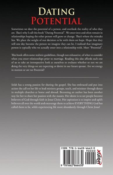 Sometimes we date the potential of a person, and overlook the reality of who they are. That's why I call this book "Dating Potential". We enter into and often remain in relationships hoping the other person will grow or change. That's where the mistake lies. We place the weight of our decision to be with them on hope. Hope that they will one day become the person we imagine they can be. I realized that imaginary person is typically who we actually enter into a relationship with. Meet "Potential". This book offers some realistic guidelines, though not exhaustive, of what to consider when you enter relationships prior to marriage. Reading this also affords each one of us to take an introspective look at ourselves to evaluate whether or not we are doing the very things we are expecting or desire in our future spouse. Are we energy in motion or are we Potential? Selah has a strong passion for sharing the gospel. She has embraced and put into action the call on her life to lead ministry groups, teach, and minister through dance in multiple churches at home and abroad. Becoming an author has been another way for her to share her passion with the masses. Her desire is to see people become believers of God through faith in Jesus Christ. Her aspiration is to inspire and uplift believers all over the world and encourage them to achieve EVERYTHING God has called them to be, while experiencing life more abundantly through Christ Jesus!