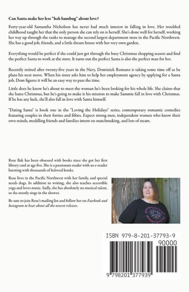 Can Santa make her less "bah humbug" about love? Forty-year-old Samantha Nicholson has never had much interest in falling in love. Her troubled childhood taught her that the only person she can rely on is herself. She's done well for herself, working her way up through the ranks to manage the second largest department store in the Pacific Northwest. She has a good job, friends, and a little dream house with her very own garden. Everything would be perfect if she could just get through the busy Christmas shopping season and find the perfect Santa to work at the store. It turns out the perfect Santa is also the perfect man for her. Recently retired after twenty-five years in the Navy, Dominick Romano is taking some time off as he plans his next move. When his sister asks him to help her employment agency by applying for a Santa job, Dom figures it will be an easy way to pass the time. Little does he know he's about to meet the woman he's been looking for his whole life. She claims that she hates Christmas, but he's going to make it his mission to make Sammie fall in love with Christmas. If he has any luck, she'll also fall in love with Santa himself. "Dating Santa" is book one in the "Loving the Holidays" series, contemporary romantic comedies featuring couples in their forties and fifties. Expect strong men, independent women who know their own minds, meddling friends and families intent on matchmaking, and lots of steam.