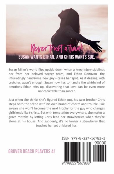 Ethan was my crush. Chris is the disaster I never saw coming. This fall, I somehow end up in the middle of every girl's dream and worst nightmare: identical twins who both want to date me. Ethan is the sweet one. The safe one. The boy who makes me laugh until my cheeks hurt. But just when our first kiss is inches away, his eyes suddenly scream one thing: Abort mission! What on earth...? And then there is Chris Donovan. Chris with a smirk that should be illegal and a reputation longer than my to-do list. Playing fair isn't even on his radar. One second he is stealing my hand like he has a right to it, the next he is dropping late-night texts that should irritate me but make my heart race instead. With every secret glance he throws my way, he keeps insisting he is more than the school's resident heartbreaker. And I keep insisting I will never fall for the twin with the killer smile. But then everything in my life falls apart. And Chris is the one who catches me. Now I can't forget the way his voice softened when he said my name. The way his arms felt when he didn't let me fall. Or the taste of his lips when I finally listened to him...and closed my eyes. Each book can be read as a standalone. The complete GROVER BEACH PLAYERS series in chronological reading order: 1. Play With Me 2. Ryan Hunter 3. T is for... 4. Dating Trouble 5. The Trouble with Dating Sue 6. The Impossible Bet 7. Taming Chloe Summers
