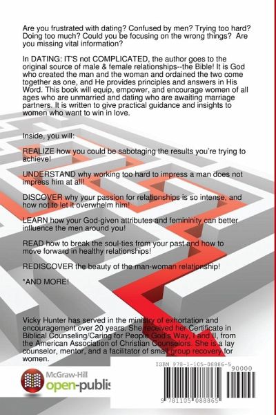 DATING:IT'S not COMPLICATED! is written to give guidance to women who think dating is too complicated and for women who want to win in love. It will equip, empower and encourage Christian women of all ages who are unmarried and dating who desire to uphold biblical principles and values as they await marriage partners. Women want to unravel the complexities of dating once and for all, and get all the benefits God intended when He created male and female and ordained the two come together as one. Are you tired of striving, trying, and working to create your dream relationship... Trying to be a better person, reading books from dating gurus, talking with your girlfriends getting opinions on what you're doing wrong-- wondering why men can't see that you are a great catch? Are you tired of being dumped, heartbroken, and alone? You will be inspired, motivated, and uplifted, and your dating load will be lightened after reading this book of lessons and insights.