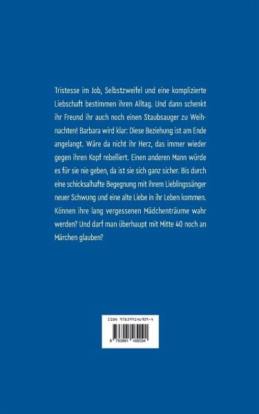 Tristesse im Job, Selbstzweifel und eine komplizierte Liebschaft bestimmen ihren Alltag. Und dann schenkt ihr Freund ihr auch noch einen Staubsauger zu Weihnachten! Barbara wird klar: Diese Beziehung ist am Ende angelangt. Wäre da nicht ihr Herz, das immer wieder gegen ihren Kopf rebelliert. Einen anderen Mann würde es für sie nie geben, da ist sie sich ganz sicher. Bis durch eine schicksalhafte Begegnung mit ihrem Lieblingssänger neuer Schwung und eine alte Liebe in ihr Leben kommen. Können ihre lang vergessenen Mädchenträume wahr werden? Und darf man überhaupt mit Mitte 40 noch an Märchen glauben?
