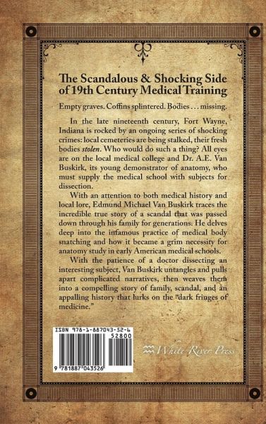 Empty graves. Coffins splintered. Bodies . . . missing. In the late nineteenth century, Fort Wayne, Indiana is rocked by an ongoing series of shocking crimes: local cemeteries are being stalked, their fresh bodies stolen. Who would do such a thing? All eyes are on the local medical college and Dr. A.E. Van Buskirk, its young demonstrator of anatomy, who must supply the medical school with subjects for dissection. With an attention to both medical history and local lore, Edmund Michael Van Buskirk traces the incredible true story of a scandal that was passed down through his family for generations. He delves deep into the infamous practice of medical body snatching and how it became a grim necessity for anatomy study in early American medical schools. With the patience of a doctor dissecting an interesting subject, Van Buskirk untangles and pulls apart complicated narratives, then weaves them into a compelling story of family, scandal, and an appalling history that lurks on the "dark fringes of medicine."