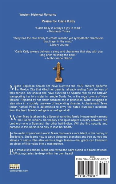 Maria Espinosa should not have survived the 1679 cholera epidemic in Mexico City that killed her parents, already reeling from the loss of their fortune, nor should she have survived an Apache raid on the caravan transporting her to a sister in remote Santa Fe, in the royal colony of New Mexico. Rejected by her sister because she is penniless, Maria struggles to stay alive in a society unaware of impending disaster. A charismatic Tewa Indian named Popé is determined to drive the hated European overlords from the land. Maria's refuge is no refuge at all. When Mary is taken in by a Spanish ranching family living uneasily among the Pueblo Indians, her beauty and spirit inspire a rivalry between two brothers-one a Spaniard, the other half-Indian. Will she find security and purpose in this harsh land only to lose her heart? In the midst of personal turmoil, Maria discovers a rare talent in this colony of believers. She learns how to carve discarded branches and tree stumps into statues of saints. She also learns the larger lesson: that grace can transform an object of little value into a masterpiece. But trouble lies ahead. Maria can reveal the saint buried in a block of wood. What mysteries lie deep within her own heart?