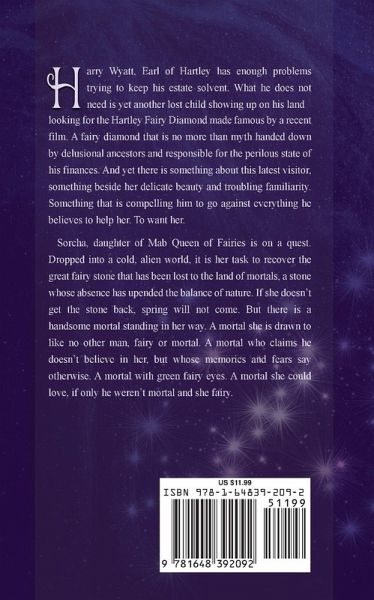He's had enough... Harry Wyatt, Earl of Hartley has enough problems trying to keep his estate solvent. What he does not need is yet another lost child showing up on his land looking for the Hartley Fairy Diamond made famous by a recent film. A fairy diamond that is no more than myth handed down by delusional ancestors and responsible for the perilous state of his finances. And yet there is something about this latest visitor, something beside her delicate beauty and troubling familiarity. Something that is compelling him to go against everything he believes to help her. To want her. She's on a quest... Sorcha, daughter of Mab Queen of Fairies is on a quest. Dropped into a cold, alien world, it is her task to recover the great fairy stone that has been lost to the land of mortals, a stone whose absence has upended the balance of nature. If she doesn't get the stone back, spring will not come. But there is a handsome mortal standing in her way. A mortal she is drawn to like no other man, fairy or mortal. A mortal who claims he doesn't believe in her, but whose memories and fears say otherwise. A mortal with green fairy eyes. A mortal she could love, if only he weren't mortal and she fairy.