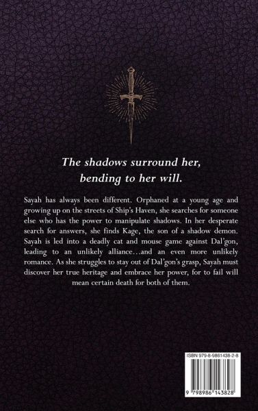 The shadows surround her, bending to her will. Sayah has always been different. Orphaned at a young age and growing up on the streets of Ship's Haven, she searches for someone else who has the power to manipulate shadows. In her desperate search for answers, she finds Kage, the son of a shadow demon. Sayah is led into a deadly cat and mouse game against Dal'gon, leading to an unlikely alliance...and an even more unlikely romance. As she struggles to stay out of Dal'gon's grasp, Sayah must discover her true heritage and embrace her power, for to fail will mean certain death for both of them.